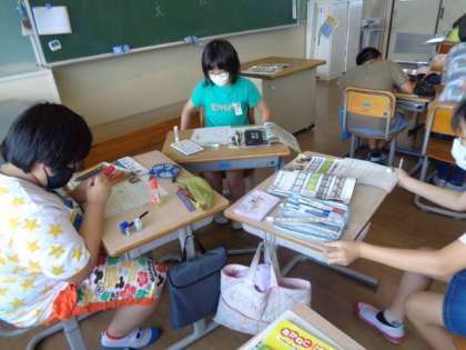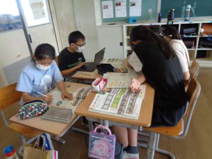 【5年生】形が動く 絵が動く 公開日 2022/06/30 更新日 2022/06/30 5年生 図工の学習で、アニメーションによる動きや変化の工夫を動画を撮りながら学習しています。今日は、動画の構成を考えました。グループの人と話すことでより考えが深まったり、新しいアイデアが思いついたりしているようでした。
