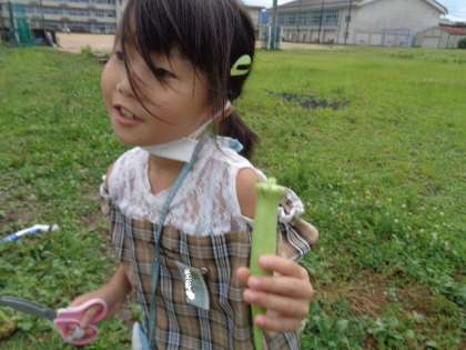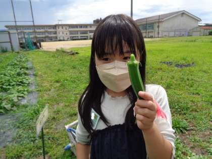 【2年生】わたしたちの野菜畑 公開日 2022/07/04 更新日 2022/07/04 2年生 激しい雨も午後からようやく収まりました。週明けにたくさんの野菜が収穫の時期を迎えていたので、土入れや草むしりをしたり、枯れた葉っぱを取り除いたり、今日は収穫とお世話を頑張りました。新鮮な野菜を持ち帰ったので、家でおいしく食べてください。