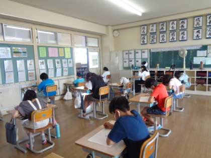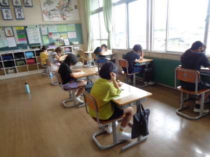【5年生】テスト 公開日 2022/07/05 更新日 2022/07/05 5年生 学期のまとめテストも残すところあと算数だけになりました。今日は、国語のテストに取り組みました。集中して取り組むことができていました。