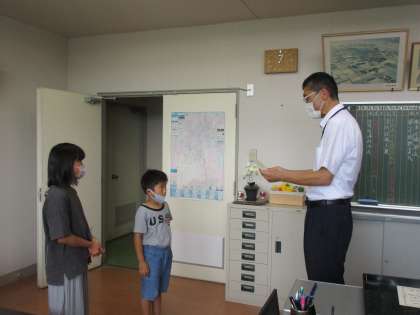 1年生と5年生の受賞伝達を行いました。今後も力をつけていくことを期待しています。