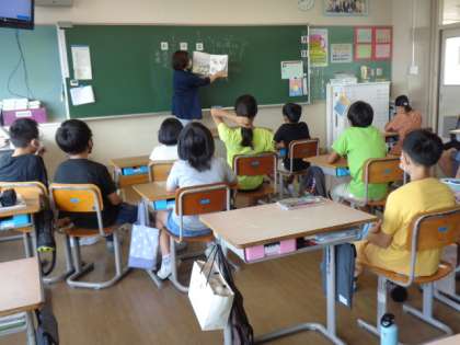 活動の様子です。子どもたちは毎週金曜日の読み聞かせを楽しみにしています。