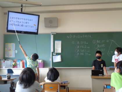 【5年生】重点清掃 公開日 2022/07/08 更新日 2022/07/08 5年生 環境委員会より、重点清掃についての説明を聞きました。掃除用具を使うときの注意点や気をつけるべきことをクイズ形式で分かりやすく教えてもらいました。
