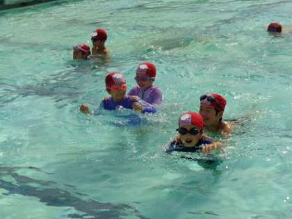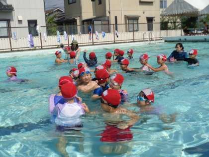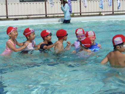 【2年生】プール 公開日 2022/07/08 更新日 2022/07/08 2年生 今日は、電車歩きで遊びました。2人組から4〜7人と長い電車に増やしていきました。じゃんけんをして、勝ったらトンネルをくぐります。子供たちは楽しそうに友達と活動していました。暑い夏、どんどん水と仲良しになってほしいです。