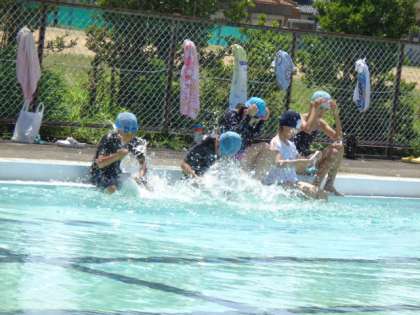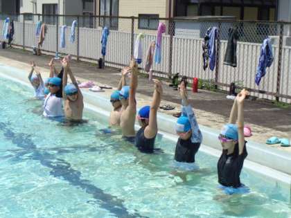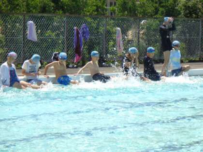 それぞれのチームに分かれて練習をしました。Aチームはなんと、バタフライや平泳ぎを練習していました。Bチームでは、クロールでどこまで泳げるか挑戦しました。中には25メートル泳げるようになった人もいました。