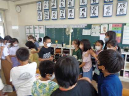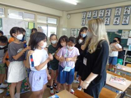 ALTの先生と一学期に学習したことを活用してゲームをしました。ゾンビゲームでは、大いに盛り上がりました。