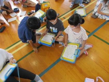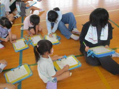 みずほタイムに七夕集会がありました。なかよし班のお兄さんお姉さんと一緒に、夏に関連する言葉を使った夏ビンゴを楽しみました。