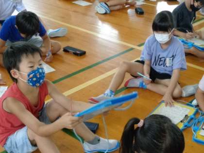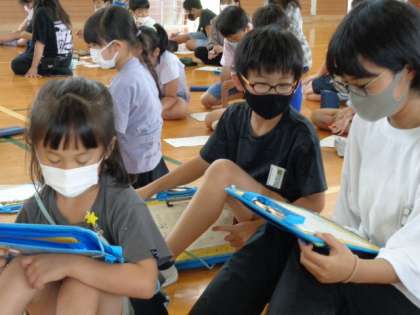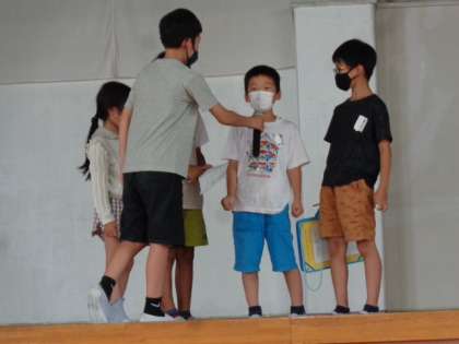 夏ビンゴでは、6年生に見守ってもらいながら楽しく参加していました。見事ビンゴになった子は、ステージでインタビューを受けました。「あと少しだったのに!」と残念そうな子もいっぱいいました。楽しい集会でした。