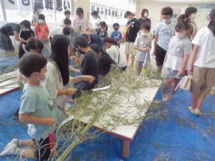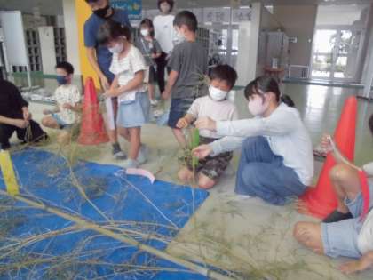 1年生と一緒に、願いを込めた短冊を竹につけました。