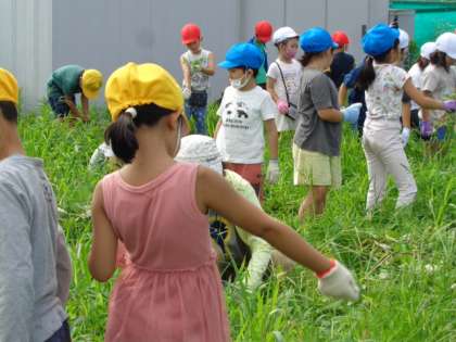 【1・2年生】草むしり 公開日 2022/07/13 更新日 2022/07/13 2年生 草ぼうぼうのサツマイモ畑の草むしりを行いました。暑い中でしたが、みんなで一生懸命頑張りました。汗びっしょりになりました。