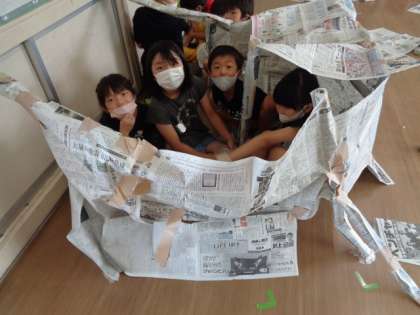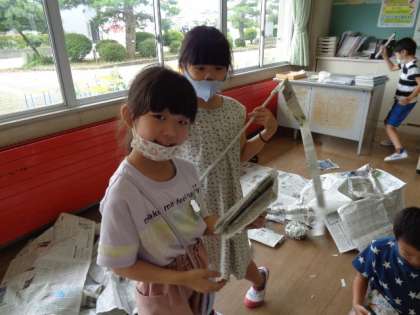 【2年生】図工 公開日 2022/07/14 更新日 2022/07/14 2年生 友達と仲良く活動してとっても楽しんでいました。片付けの時間には「ええ!もったいないよ!」と悲しそうでしたが、片付けもみんなで楽しくできました。