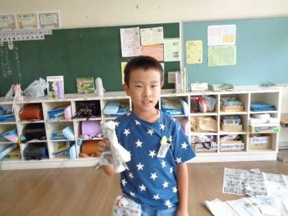 新聞紙を使って、食べ物なども想像して作っていました。
