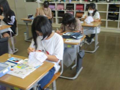 名前の縫い取りをしました。今まで学習したことを生かしながら、集中して取り組んでいました。