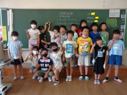 【2年生】ごほうび集会 公開日 2022/07/21 更新日 2022/07/21 2年生 明日で1学期73日が終わります。今日は1学期最後のごほうび集会をしました。準備する時間がなくて、司会や言葉も当日に決めるバタバタぶりでしたが、ちゃんと自分で言葉を考えて上手に進める姿に成長を感じました。今日は「プリンゲーム」と「ジェスチャーゲーム」をしました。とっても楽しかったですね。