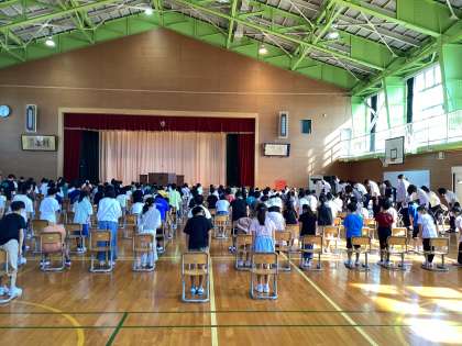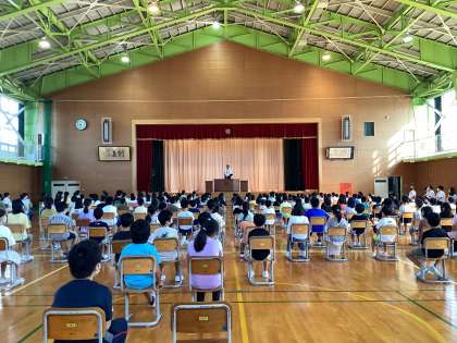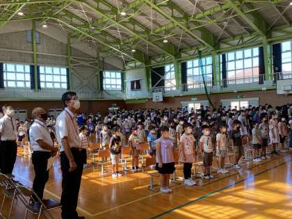 2学期 始業式 公開日 2022/08/29 更新日 2022/08/29 学校行事 長い夏休みが終わり、今日から2学期が始まりました。 子供たちは、朝から元気に登校しました。久しぶりに会う友達と夏休みの思い出を話したり、一生懸命取り組んだ夏休みの作品を見せ合ったりしていました。 始業式では、校長先生から「挨拶」について話を聞きました。子供たちには挨拶をきっかけに、「自分が好き、みんなが好き、神保が好き」と言える神保っ子を目指して欲しいと思います。