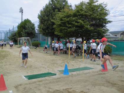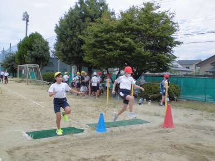 チャレンジ陸上大会に向けて、走り幅跳びの練習をしました。