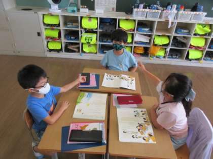 「ききたいな、ともだちのはなし」の学習では、グループで夏休みの思い出を発表しました。友達の話を聞いて、質問したり、感想を伝えたりしました。