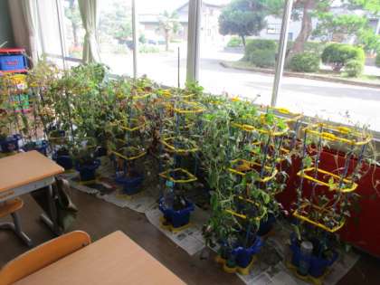 【1年生】アサガオのお世話 公開日 2022/08/31 更新日 2022/08/31 1年生 今日は午後から風が強く吹いていました。下校の準備をしていた子供たちが、風に倒されているアサガオを見付け、鉢を起こしてくれました。しかし、風ですぐに倒れてしまい、急遽教室の中に移動させることにしました。みんなで協力して鉢を移動させる姿に、大切に育ててきたアサガオへの思いを感じました。