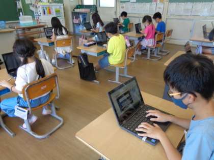 【2年生】クロムブック 公開日 2022/09/05 更新日 2022/09/05 2年生 今日は教科書の学習が早めに終わったのでタイピングの練習をしてみました。子供たちは楽しそうに取り組んでいました。