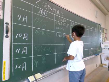 2学期に入って初めての係活動を行いました。第1回は、2学期に行う活動計画を立てることから始めました。子どもたちは季節にあったイベントを考えたり、みんなを楽しませるための活動を工夫しようとしたりしていました。