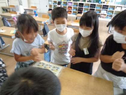 子供たちが集まって、手を順に重ねてパチンと叩く遊びをしました。どんどん人が増えて楽しかったですね。みんな笑顔で可愛かったです。