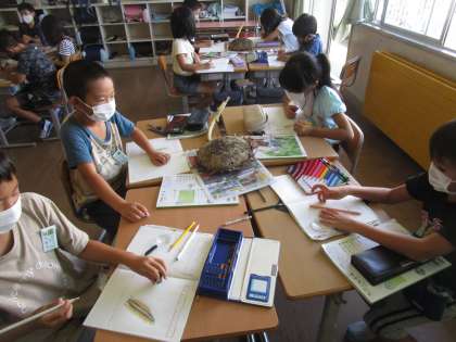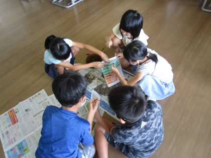 3年生 理科 公開日 2022/09/09 更新日 2022/09/09 3年生 ひまわり育ち方について勉強しました。ひまわりの実ができた様子を観察し、実際に何個実があるのか、それぞれの班で調べました。