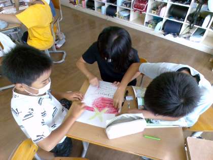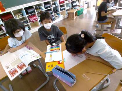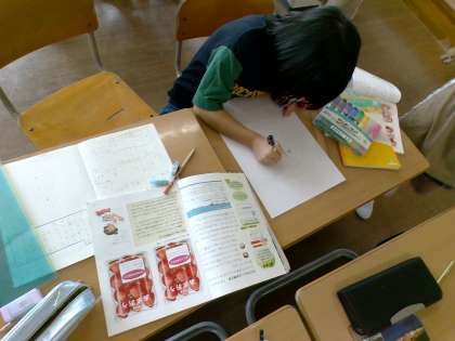 農家の仕事について学習を進めてきました。最後に、農家の人の願いや工夫が伝わる、宣伝シールをデザインし、紹介しました。