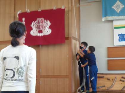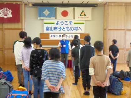 入所式とオリエンテーリングでは、所の方からのお話を聞きました。登山後の疲れた中でも元気な挨拶、きびきびとした動きができていました。