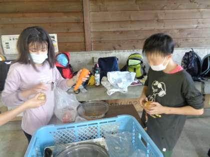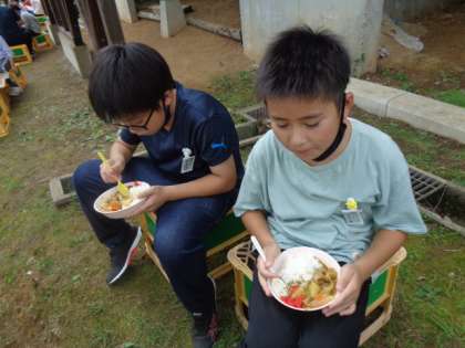 2日目は野外炊飯をしました。美味しいカレーを班の仲間と協力して作りました。