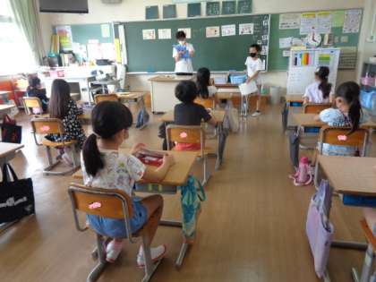 【2年生】朝の会 公開日 2022/09/15 更新日 2022/09/15 2年生 今日から2組が学校再開しました。まだ全員は揃いませんが、子供たちは元気に学校生活を楽しんでいました。1組は、実習生の先生と朝の会を進めています。子供たちは実習生の先生が大好きです。