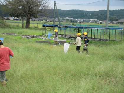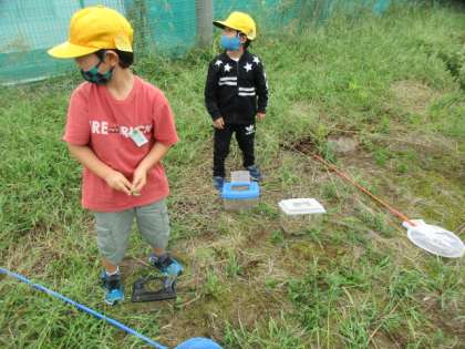 【1年生】むしだいすき 公開日 2022/09/22 更新日 2022/09/22 1年生 生活科では、虫の住みかやえさについて考え、飼育する方法を話し合いました。今日は、実際に虫を捕まえに行きました。子供たちは、虫かごの中に虫の住みかを作ったり、虫が食べるえさを入れてやったりしました。