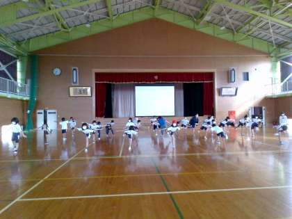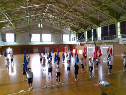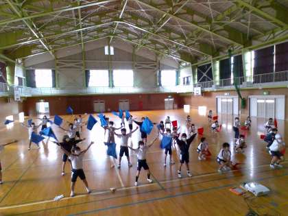 学習発表会に向けて、表現運動の練習を頑張っています。子供たちは仲間と動きを合わせたり、フラッグを振ったりしながら楽しんでいる様子です。