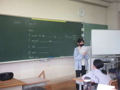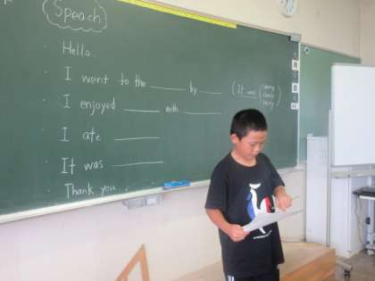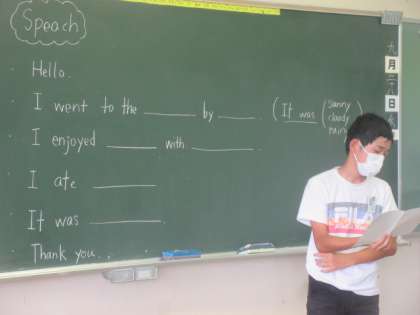 【6年生】英語でスピーチ 公開日 2022/09/28 更新日 2022/09/28 6年生 夏休みに行った場所、したこと、食べたものなどを英語でスピーチしました。 友達の発表にしっかり反応していました。