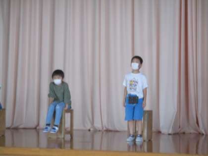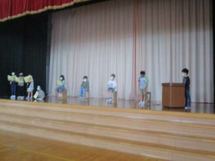 5時間目は学習発表会の劇練習をおこないました。今日は初めてステージに立っての練習。自分で考えてきた振り付けを上手にしていました。