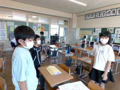 【4年生】学習発表会の練習1 公開日 2022/09/30 更新日 2022/09/30 4年生 今日の練習では、体育館やワークスペースを使って、動きや立ち位置を確認しながら練習をしました。声の大きさや動きを意識できている子供たちが増えてきました。立派な姿です。