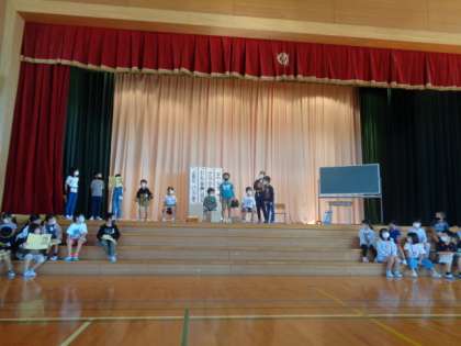 今日は場面ごとの入れ替えの練習をしました。本番まで練習できるのは10日、セリフを覚え何も見ず言える子が増えてきました。一回一回の練習を大切にすてきな劇にしていきたいです。