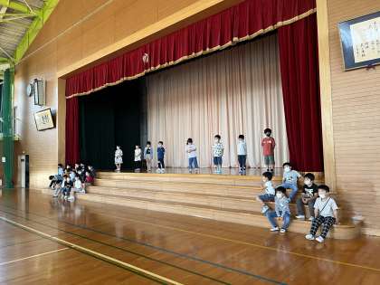 【1年生】劇の練習2 公開日 2022/09/30 更新日 2022/09/30 1年生 日に日に成長する子供たちの劇は、見ているこちらもわくわくしてきます。来週は衣装を着たり、小道具を使います。楽しみです。