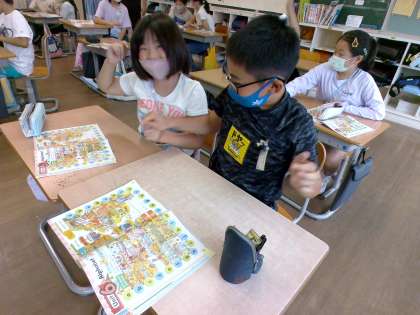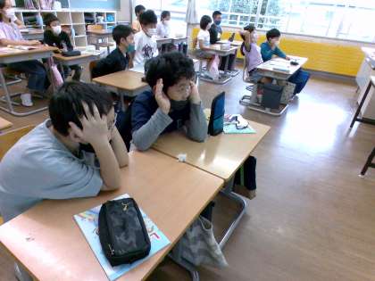 今日は小文字のアルファベットの「o」〜「z」までに慣れ親しみました。ALTの先生に続いてアルファベットを読んだり歌ったりして楽しみながら学習しました。