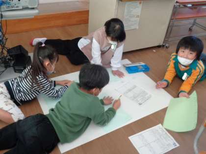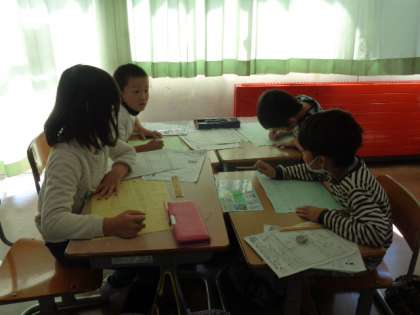 チーム毎に先月の町探検の新聞を作っています。友達と協力して学習を進めていく力を付けてほしいなあと願っています。