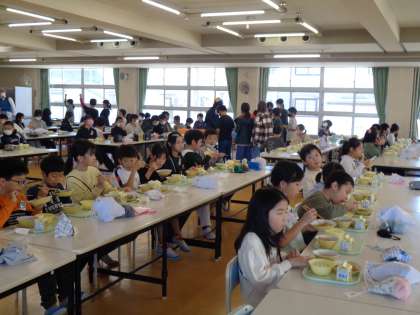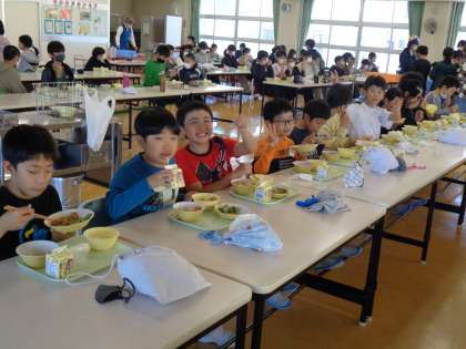 【4年生】給食の準備 公開日 2022/10/20 更新日 2022/10/20 4年生 今週の2日間は、子供たちが協力して配膳等をしているおかげで、12時15分前に食べることができています。協力して取り組むみんなが、とても立派です。