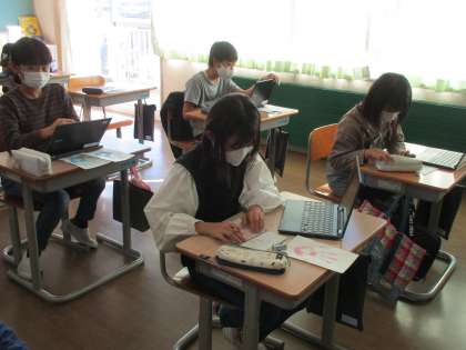 【5年生】20年後の自分へ 公開日 2022/10/21 更新日 2022/10/21 5年生 タイムカプセルに入れる作品作りを進めています。先日、絵の具で手形をとりました。今日は、その用紙にメッセージを書き込みました。20年後の自分にどんなメッセージを書くか、クロムブックで考え、書き込んでいました。未来に向けて、思い思いの作品となりました。