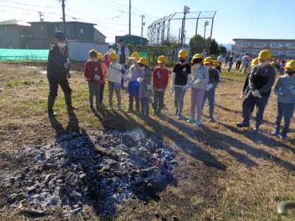 昨日準備したお芋を一人一人火の中に投げ入れました。近付くと火の熱気を感じ、子供たちは「熱い!」と驚いていました。