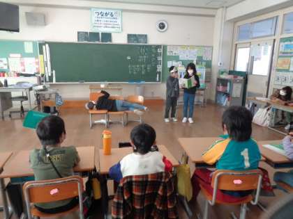 今日はグループ毎に「お手紙」の音読劇を発表しました。どのグループも、登場人物になりきったり、ナレーターも読み方を工夫したりして、とても楽しい劇でした。学習発表会で音読がさらに上達したことを感じます。