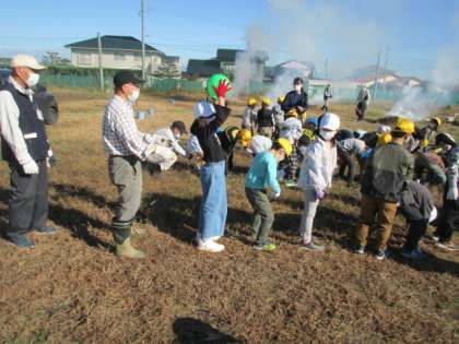 【1年生】焼き芋大会 公開日 2022/10/26 更新日 2022/10/26 1年生 1,2年生と老人クラブの方々と一緒に焼き芋大会を行いました。さつまいもが焼き上がるまで、2年生さんが考えてくれたゲームをみんなで楽しみました。
