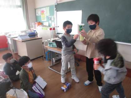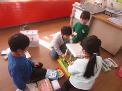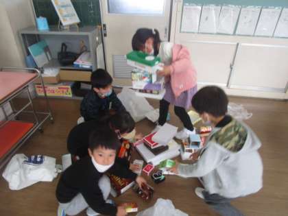 箱を使って、組み立てたり並べたりしました。建物や動物、タワーなどを作りました。友達と協力し合って、楽しく活動できました。