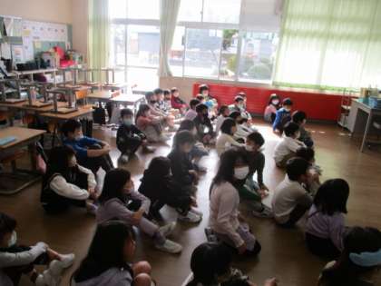 【2年生】校外学習の話 公開日 2022/10/27 更新日 2022/10/27 2年生 1.2組合同で、11月1日にある遠足の話を聞きました。クイズラリーをしながら動物を見ていくという話を聞いた子供たちは大喜び。班でそれぞれ役割を決め、遠足への準備を進めました。