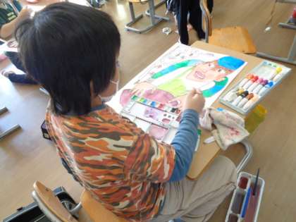 芋掘りの絵も少しずつ仕上がってきました。完成まであと一息です。