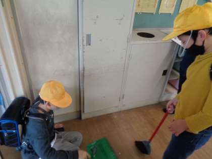 放課後に掃除をして、ゴミを取っている姿です。明日からも気持ちよく過ごすことができます、ありがとう。