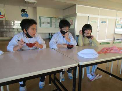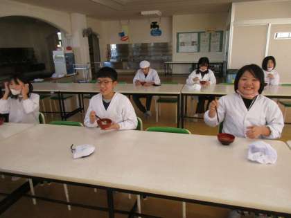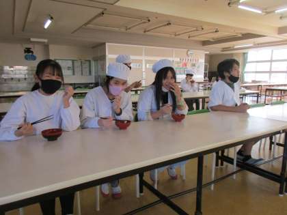 昨日、調理実習をしました。班の友達と協力し、準備・片付けや調理を行っていました。子供達は、おいしそうに味わっていたようです。