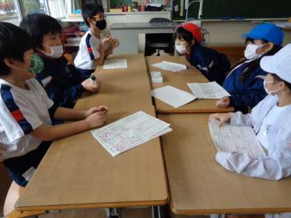 【2年生】国語「そうだんにのってください」 公開日 2022/11/14 更新日 2022/11/14 2年生 今日は「自分の仕事を忘れないためには」「読む本をどうやって選べばいいか」「暇なときの過ごし方」についてみんなで話し合いました。人の話を最後まで聞くこと、友達の考えと自分の考えを比べることは、とても大切な力です。これからも意識して頑張りましょう。