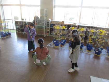 いよいよ入学体験本番です。朝から、年長さんが通る教室前を掃除してくれる子供たちの姿がありました。本番前の最後の練習では、少し緊張した様子が伝わってきました。